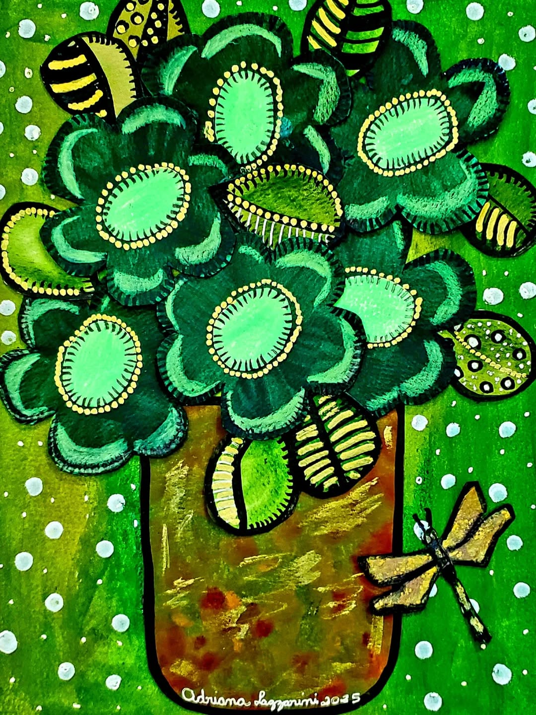 Obra "Flores verdes"Pintura em aquarela.Papel canson A4- 21 X 29,7 cm - 300g/m².